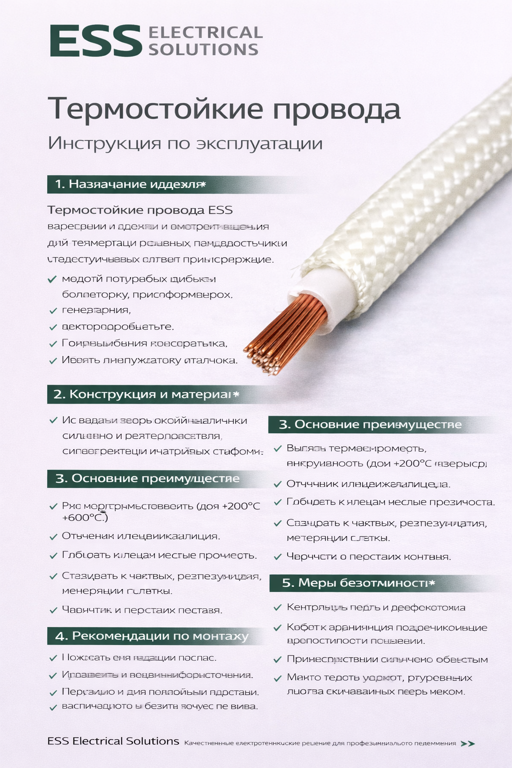 Термостойкие провода и кабели являются электропроводниками, заключенные в оболочку из термостойкого материала. Данная изоляция специально сделана для проводов и кабелей, чей упор идет на работу в высокотемпературных зонах. В составе изоляции нет галогенов, что способствует низкому уровню дымовыделения. Оболочка этих кабелей и проводов экологически безопасна и может использоваться в медицине и пищевой промышленности.