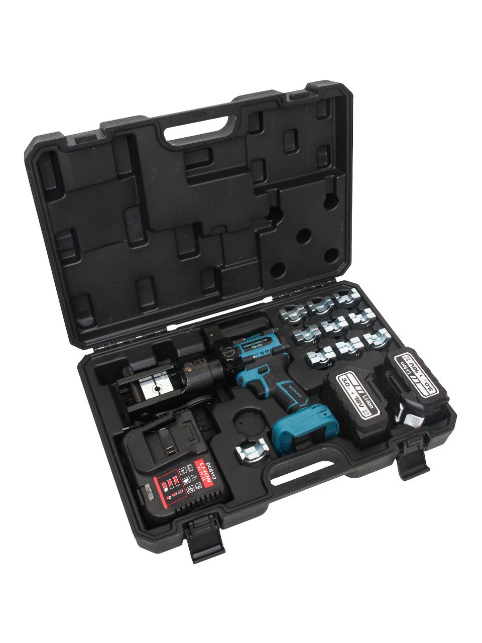 Инструмент комплектуется двумя аккумуляторами, зарядным устройством и набором матриц, что делает его полностью готовым к эксплуатации. Прочный кейс удобно защищает пресс и аксессуары, облегчая транспортировку и организацию рабочего места.