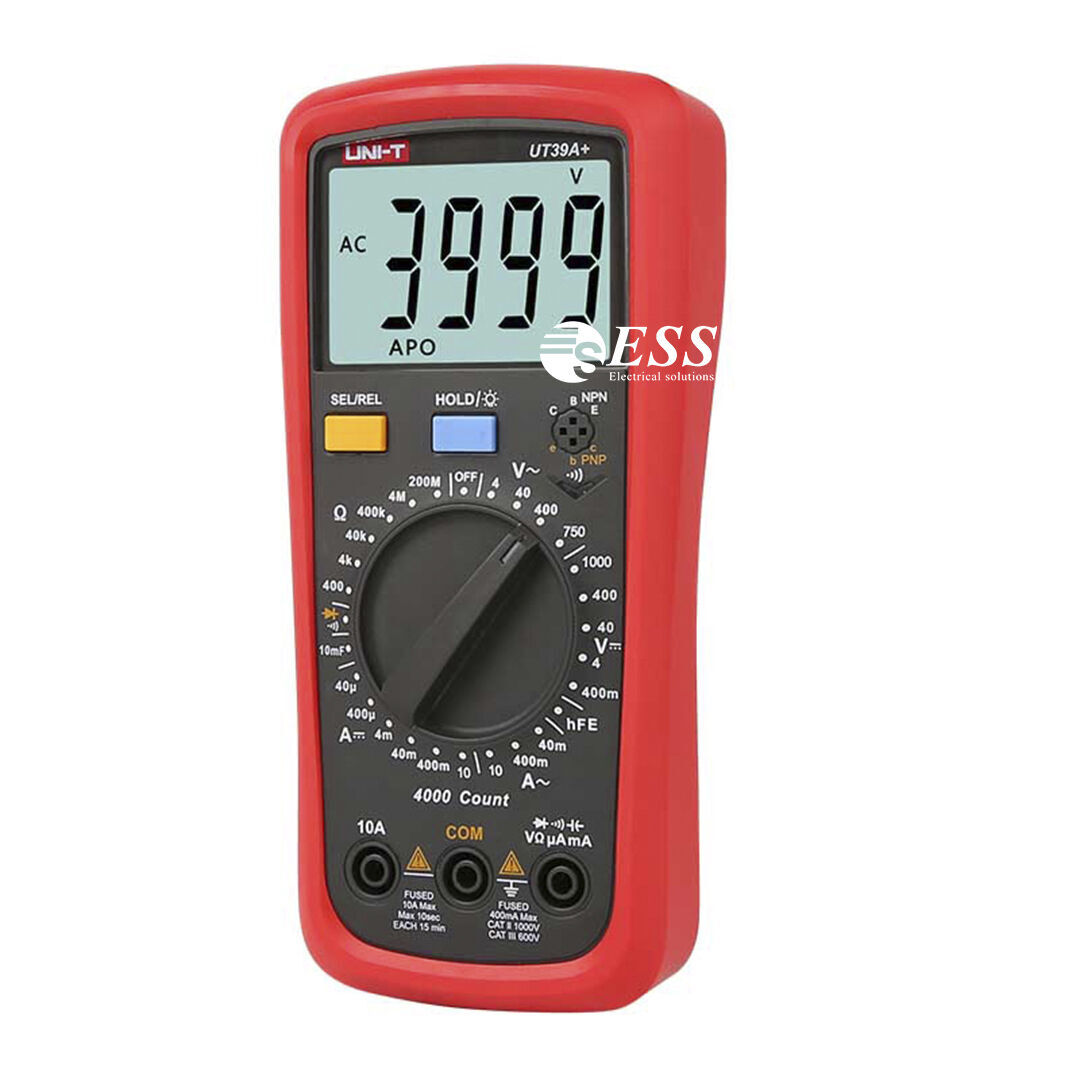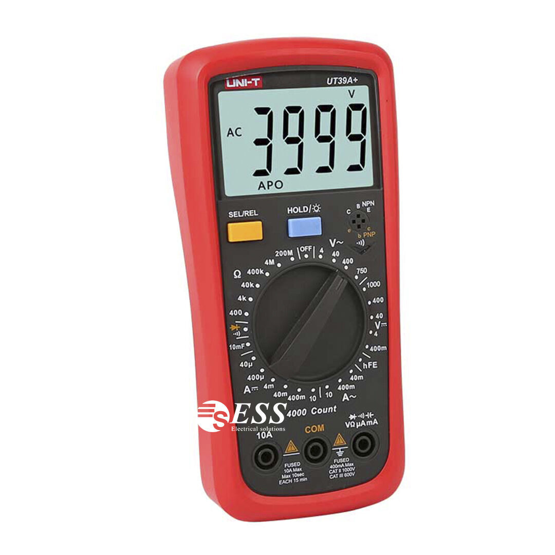 Современные цифровые мультиметры серии UT39 + - это портативные устройства, предназначенные для электротехнической промышленности. Они имеют защиту от перенапряжения и перегрузки по току и защиту от высокого напряжения, которые срабатывают во время неисправной работы. UT39C + подходит для обслуживания систем отопления, вентиляции и кондиционирования воздуха благодаря функции измерения температуры. Разработано в соответствии со стандартами безопасности CAT II 1000 В / CAT III 600 В.