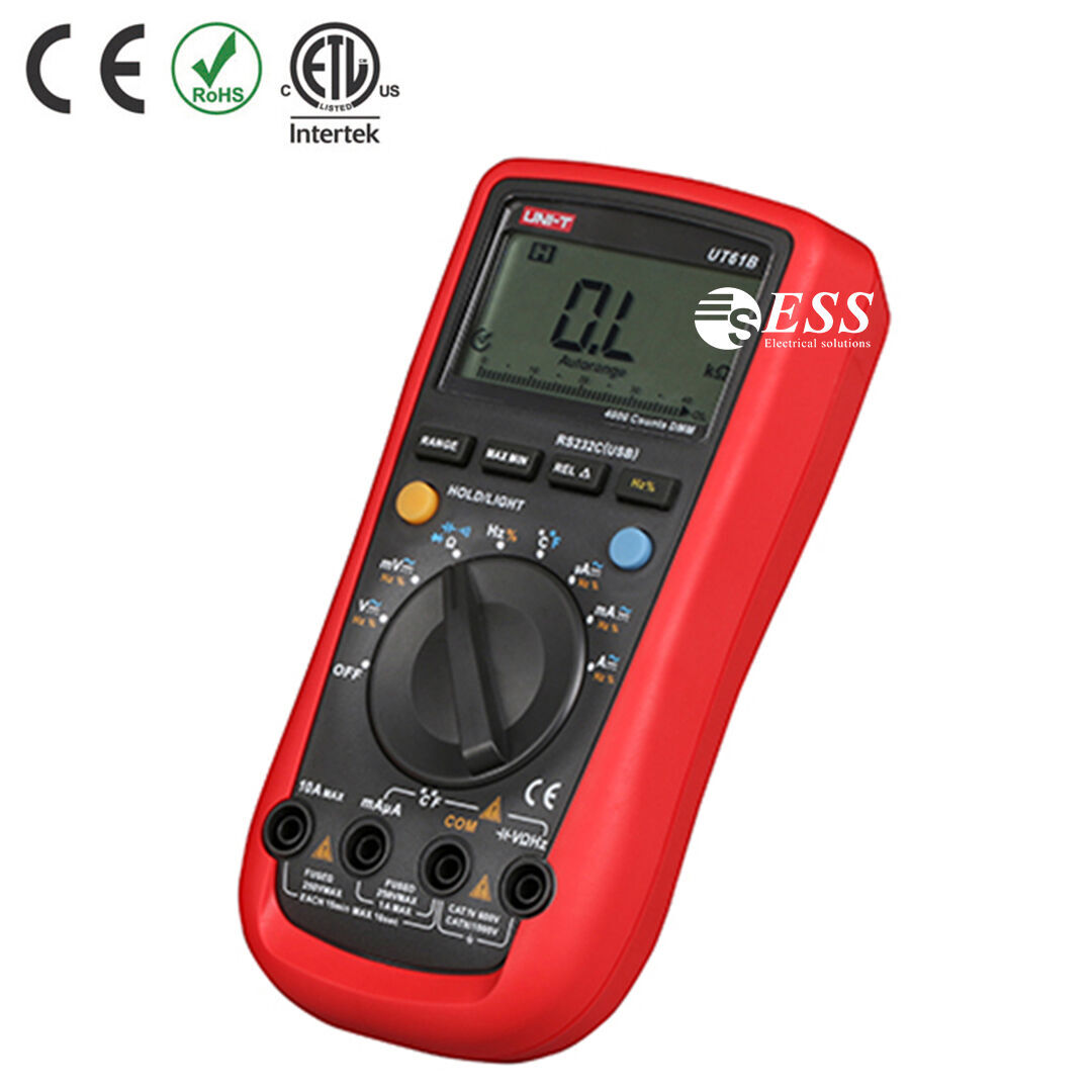 Серия UT61 соответствует стандартам CE, ETL и GS. Эта серия полностью автоматическая с выбираемыми моделями True RMS (UT61D / E). Эта серия имеет множество функций и сочетается с высокой степенью безопасности CAT IV 600V. Подходит для продвинутых пользователей электроники и электрики. Аккумулятор, измерительные провода, универсальный разъем, интерфейсный кабель RS-232, компакт-диск с программным обеспечением для ПК, температурный щуп с точечным контактом