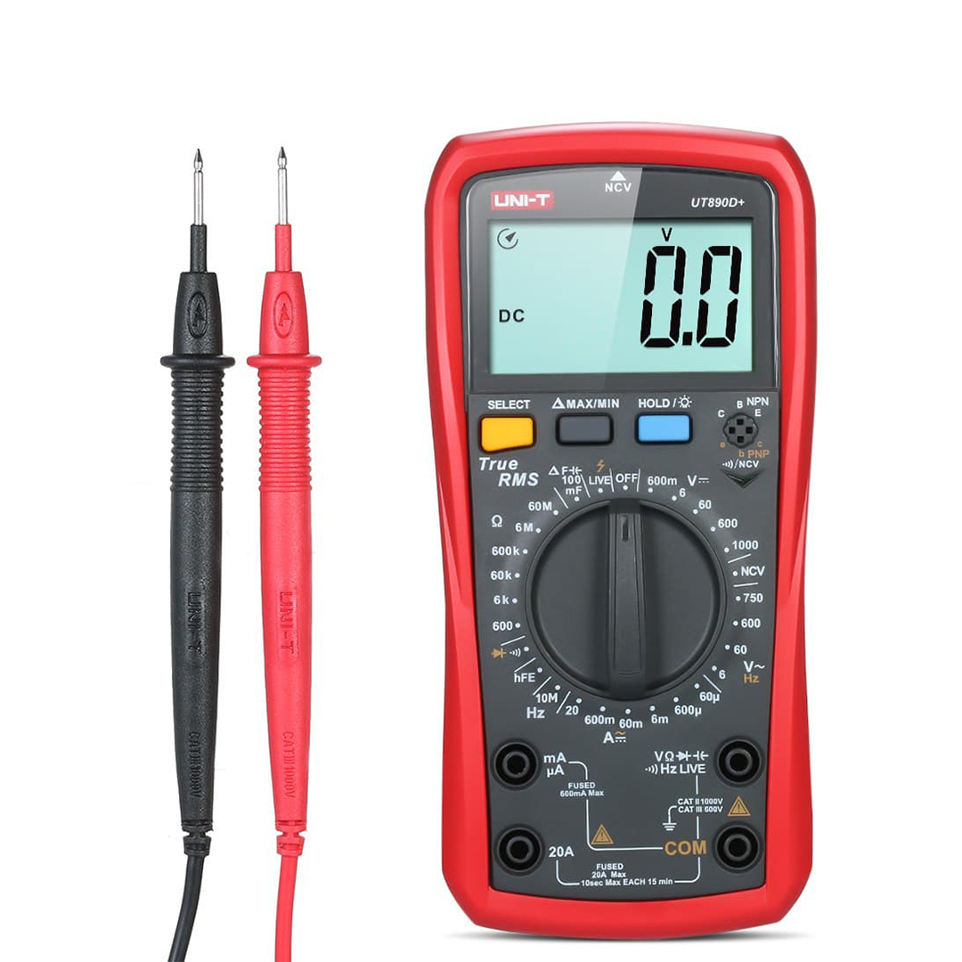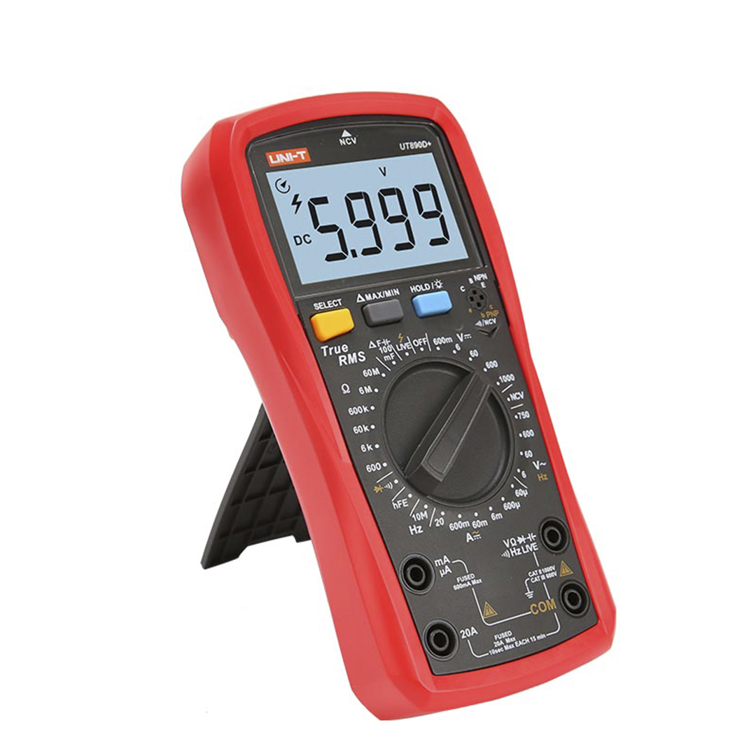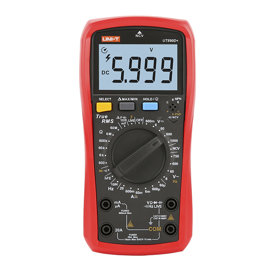 Цифровые мультиметры с истинным среднеквадратичным значением UT890C / D + с отсчетом 6000 единиц имеют большой ЖК-дисплей. Максимальная измеряемая емкость составляет 100 мФ, с быстрым временем отклика менее 12 с. NCV и измерение непрерывности имеют акустооптические индикаторы. UT890D + имеет функцию LIVE для различения проводов под напряжением и нейтрали. Кроме того, он оснащен автоматическим обнаружением перегорания предохранителя и защитой от высокого напряжения.