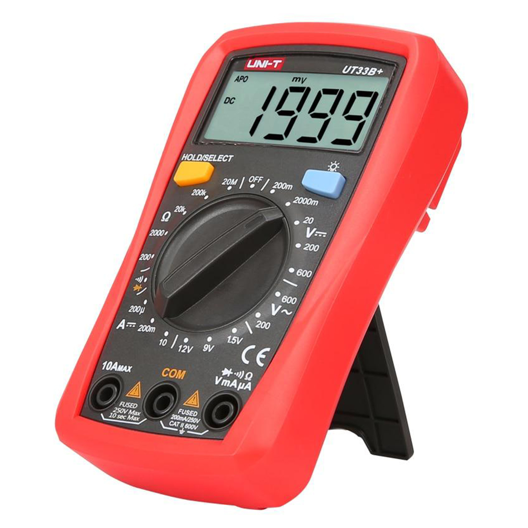 Цифровой мультиметр модели UT 33B+ c 3 разрядным ЖК дисплеем является современным надежным ручным измерительным прибором. Мультиметр предназначен для измерения постоянного напряжения, постоянного тока, сопротивления в цели и непрерывеости цепи и непрерывности цепи. А также с помощью данного прибора можно проводить тестирование диодов