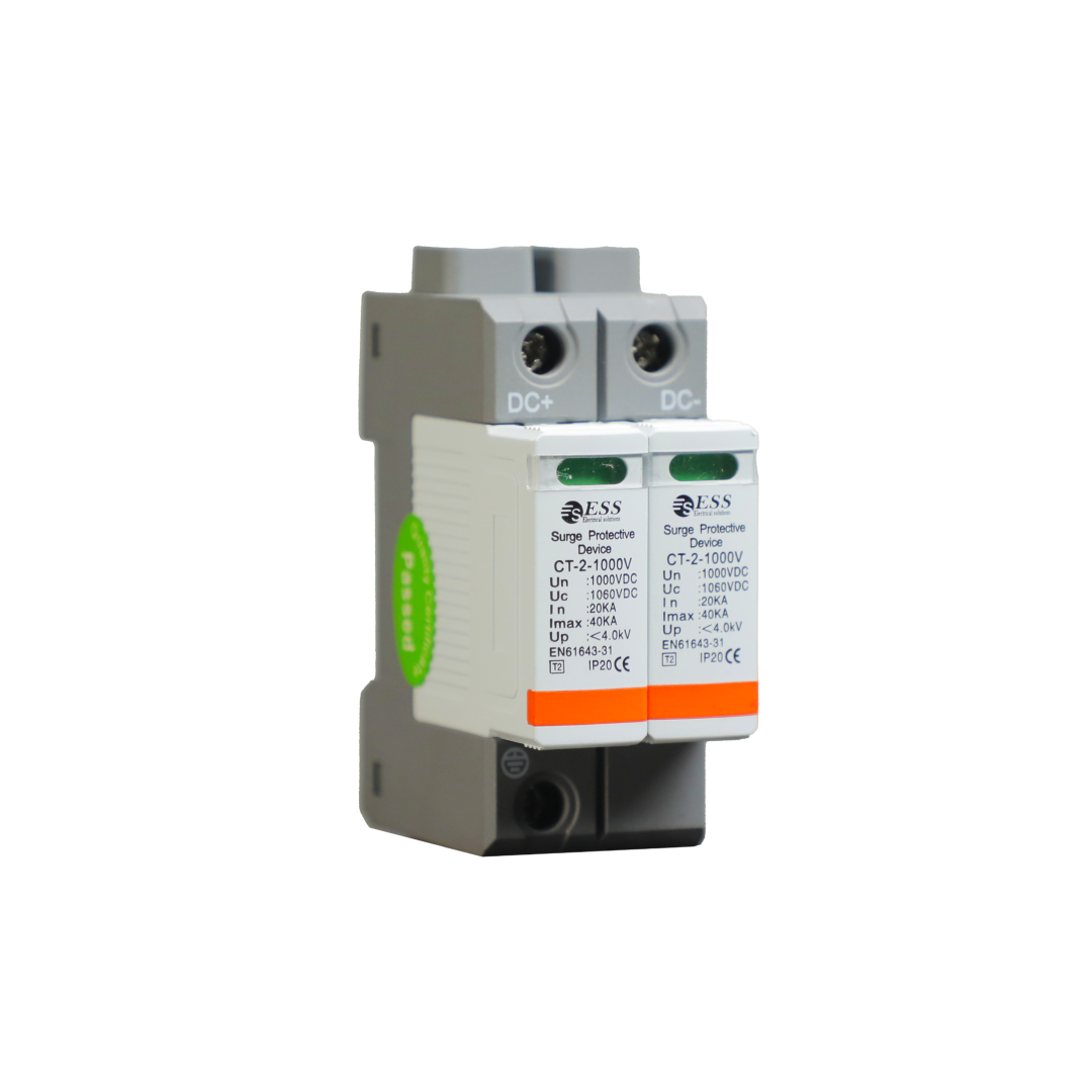 Данное устройство представляет собой двухполюсный модуль защиты от импульсных перенапряжений в цепях постоянного тока (DC), часто используемый в солнечных электросистемах, промышленной автоматике и системах телекоммуникаций. Оно предназначено для защиты оборудования от грозовых разрядов и перенапряжений, возникающих в результате коммутационных процессов.