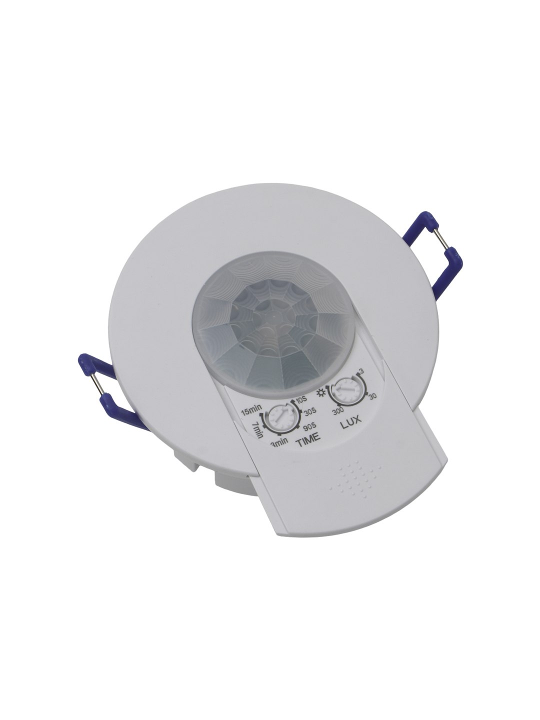 Датчик оснащен регулируемыми настройками чувствительности освещенности (LUX), времени задержки (TIME) и дальности обнаружения. Устанавливается в потолок и гармонично вписывается в интерьер.