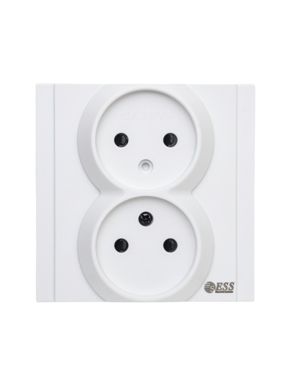 Двойная розетка с защитными шторками белая рама+белая кнопка ESS 14Х