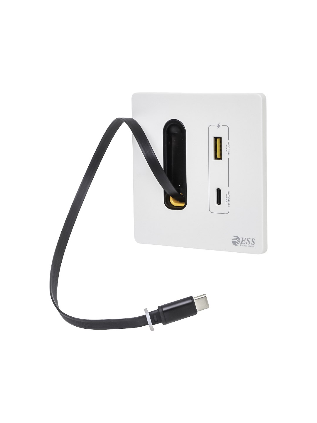 USB розетка ESS с кабелем — это современное и удобное решение для подключения и зарядки различных электронных устройств. Устройство встраивается в стену и позволяет одновременно заряжать несколько гаджетов, таких как смартфоны, планшеты, наушники или ноутбуки.