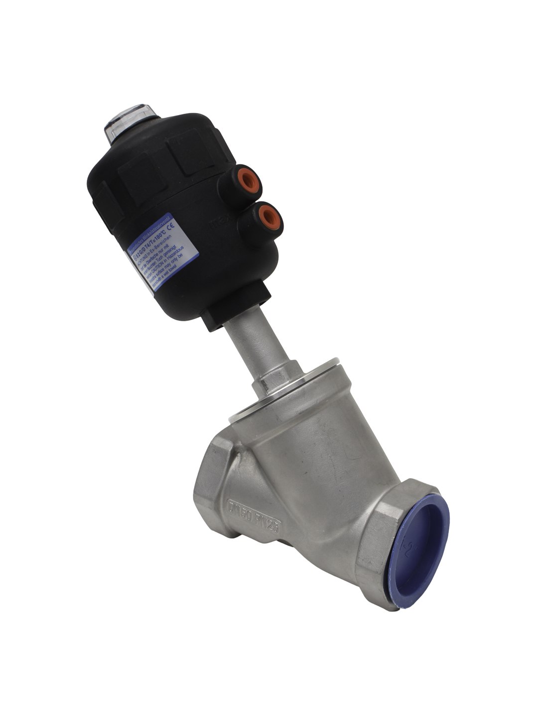"Пневматический клапан DN40 с угловой конструкцией предназначен для автоматического управления потоком жидкостей, газов и пара в трубопроводных системах. Благодаря прочному корпусу из нержавеющей стали и надёжному пневмоприводу, он обеспечивает высокую производительность и долговечность. Клапан широко применяется в пищевой, фармацевтической, химической и других отраслях, где требуется точное и быстрое управление потоком при высоких температурах и давлении.