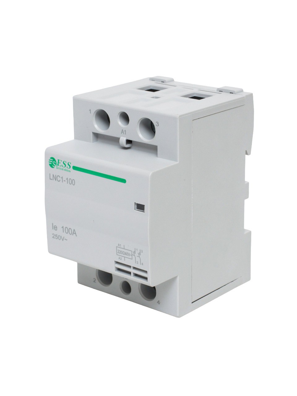 Модульный контактор ESS LNC1-100 100A / 250V~ — это электромагнитный коммутационный аппарат, предназначенный для дистанционного включения и отключения электрических цепей в бытовых и промышленных установках.