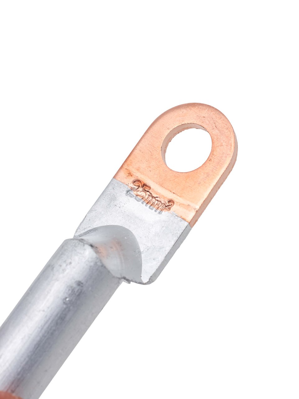 Алюмомедный кабельный наконечник применяется для соединения алюминиевых кабелей с медными шинами, клеммами или распределительными устройствами. Конструкция наконечника исключает образование гальванической пары, что повышает долговечность и надежность соединения.