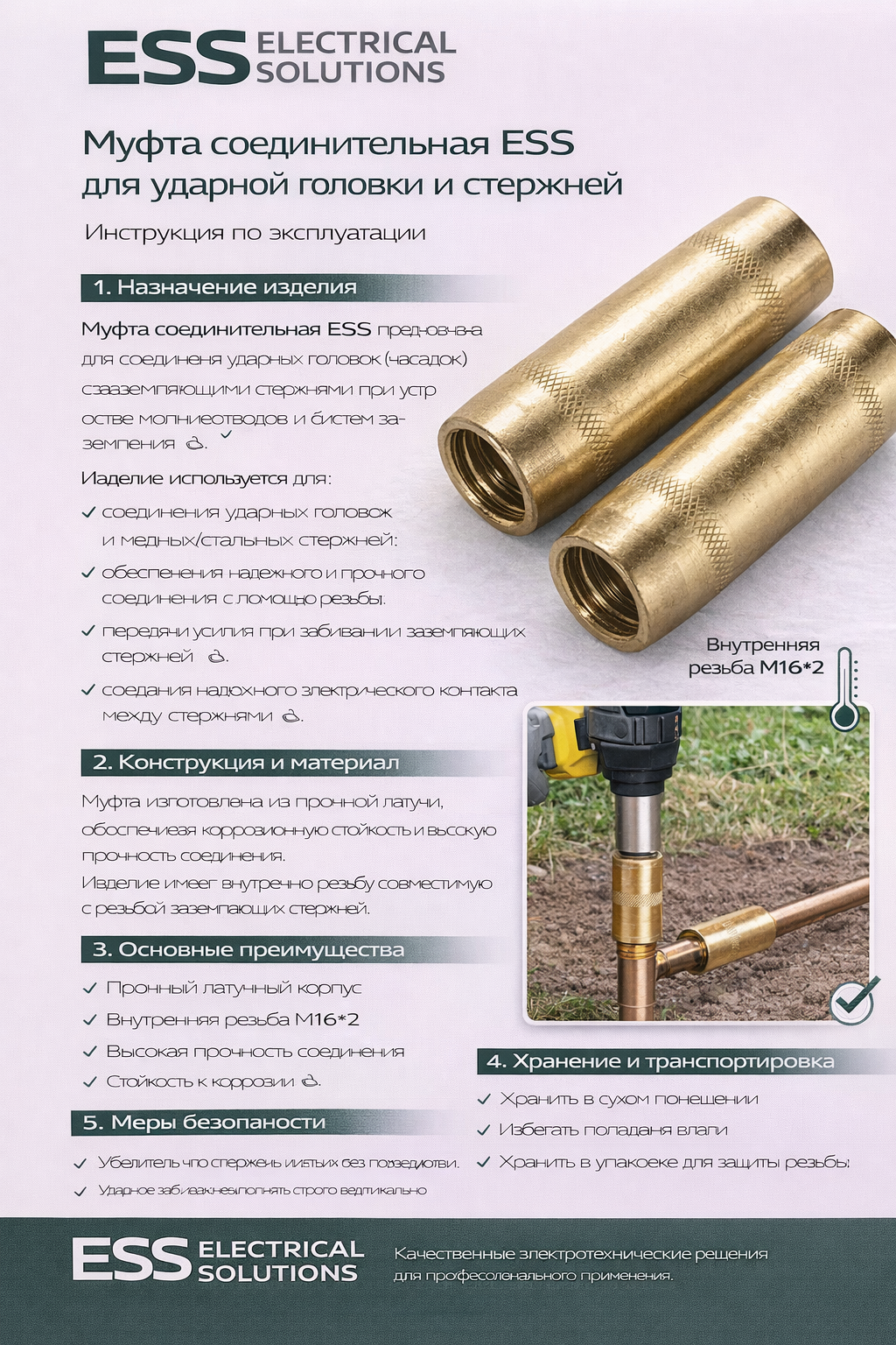Соединительная муфта ESS предназначена для надёжного крепления ударной головки и соединения стержней в ударно-буровых системах.