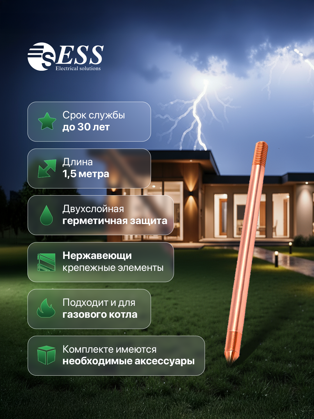 Нержавеющие заземлители – оптимальный выбор, если контактные площадки или грунты не совместимы с медью. Такой электрод заземляющий стержневой устанавливается, когда столбы, стальные конструкции, провода со свинцовой оболочкой находятся рядом с электродами заземления, а также необходимо учитывать процессы электрохимической коррозии. Применение штырей из нержавеющий стали ограничено высокой стоимостью.