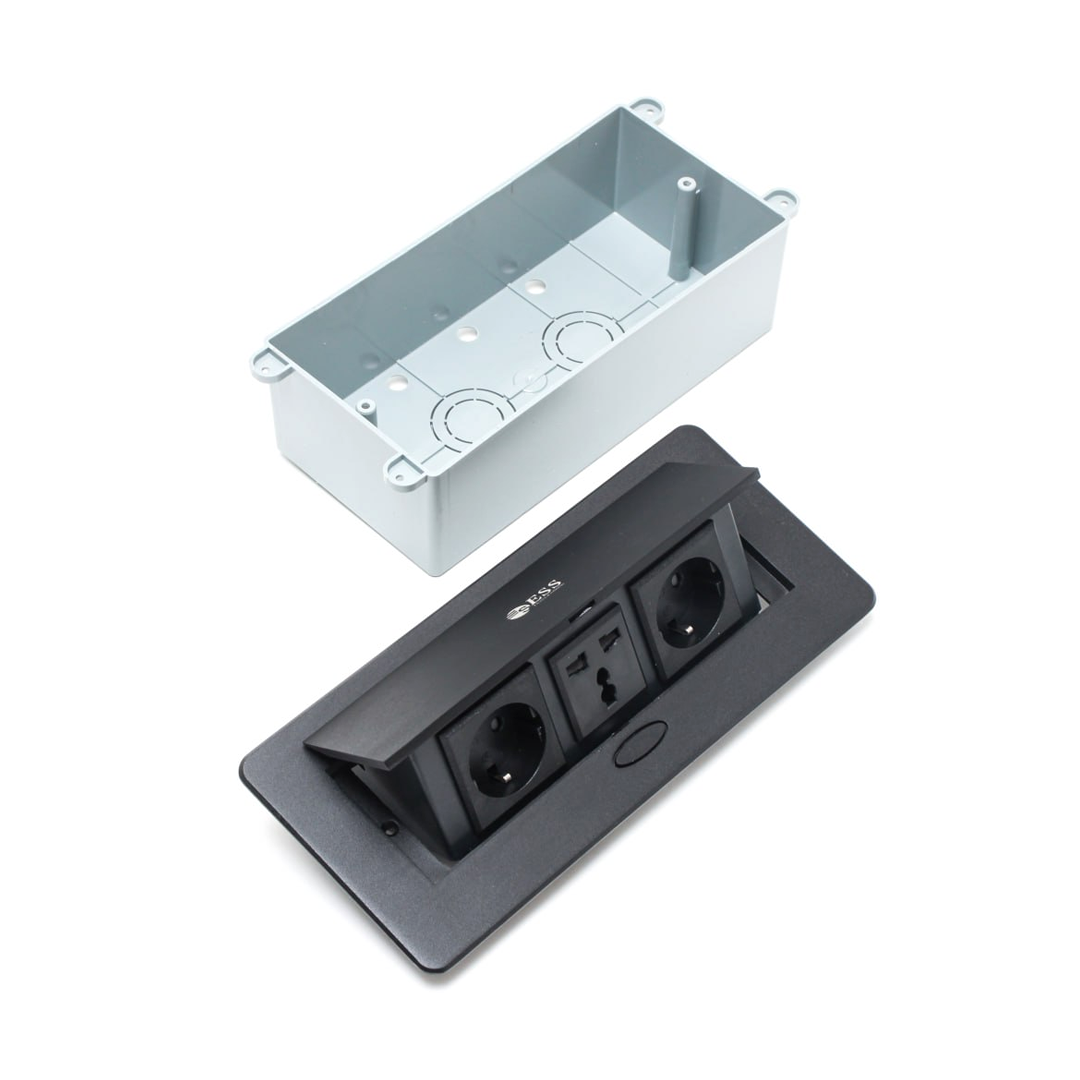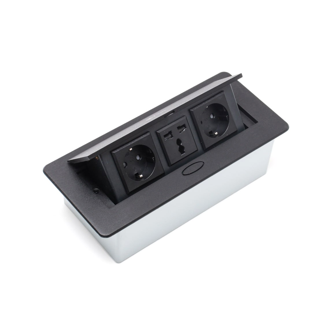 POP UP блок розеток выдвижной вертикальный, выдвижная розетка на 3 розетки евро с заземлением и универсал розетка.