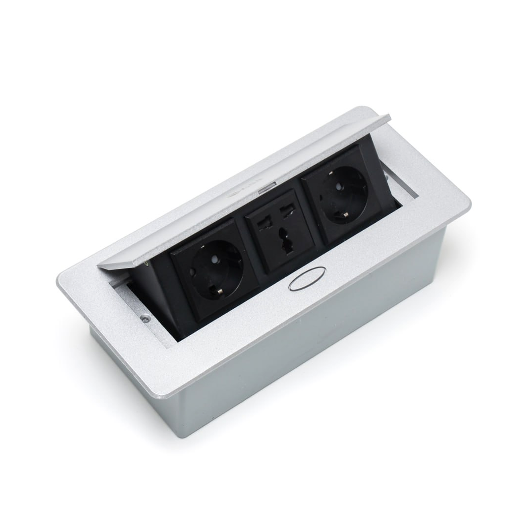 Удлинитель прямоугольный врезной 3 розетки AE-PB03GS-20 (Schucko) черный, без провода -полезный функциональный элемент интерьера вашего офиса или комнаты. Устройство устанавливается в столешницу и в «спящем» состоянии скрыто от ваших глаз. Как только вам потребуется розетка, Вы легким нажатием откроете рабочую зону удлинителя и подключите компьютер, телефон, светильник или иной гаджет к электросети.