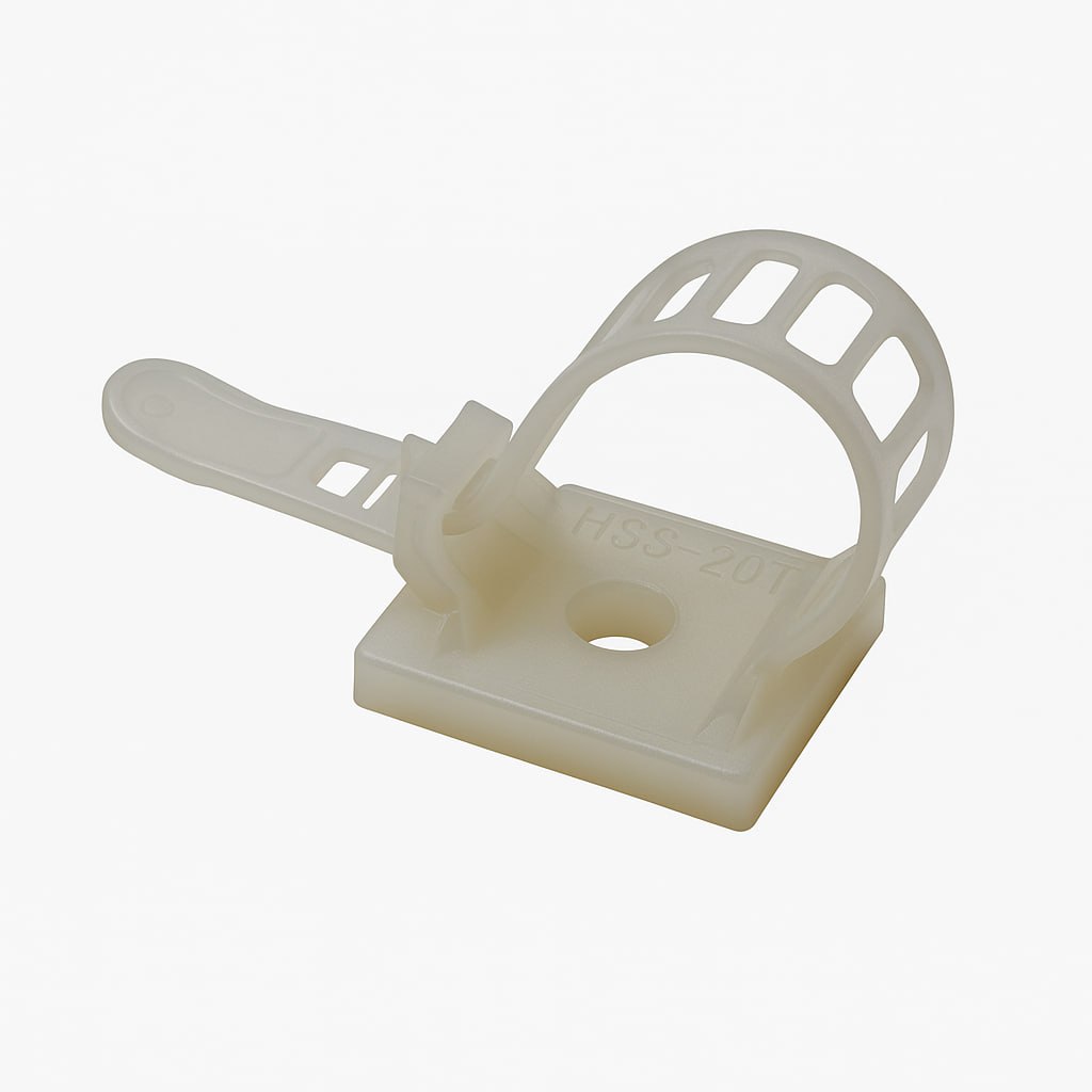 Площадка-хомут HSS-20T — это удобное и надёжное решение для крепления кабелей и проводов. Изготовлена из прочного, полупрозрачного нейлона, хомут обеспечивает фиксированное удержание кабеля благодаря встроенному регулируемому ремешку. Оснащён монтажным отверстием для надёжного крепления к различным поверхностям.