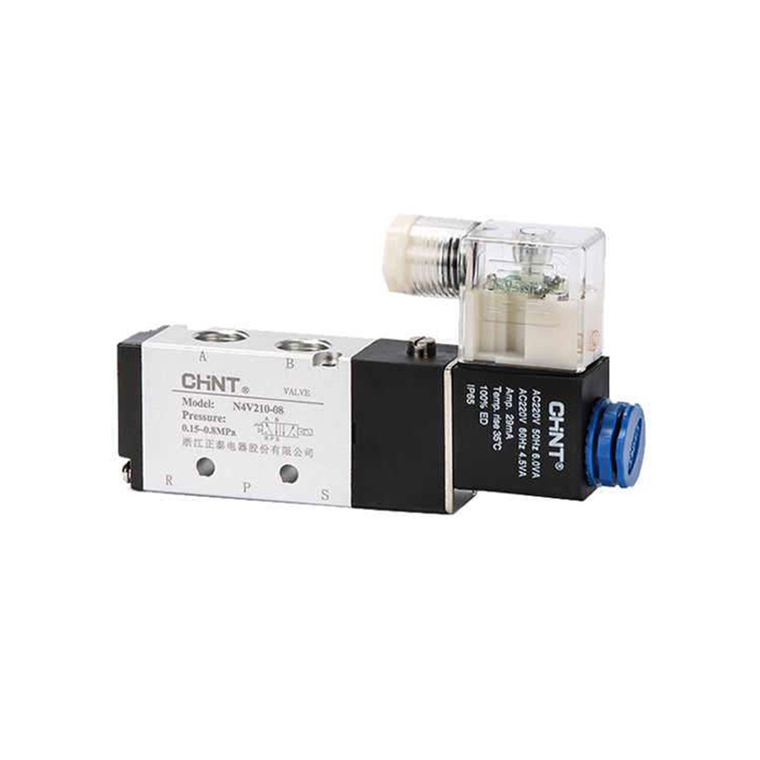 Пневмораспределитель фирмы CHiNT N4V310-10 220v8 с 1 катушкой управления служит для управления направлением движения потоков сжатого воздуха. Управление осуществляется за счет переключения схемы соединения внутренних каналов распределителя с входными и выходными присоединительными отверстиями.