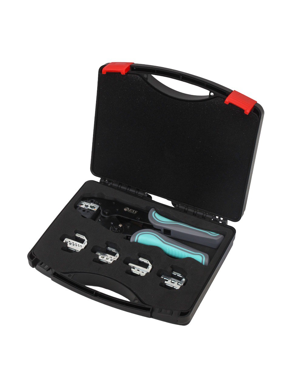 В комплект входят сменные матрицы, которые позволяют использовать инструмент с различными типами кабельных наконечников, делая клещи идеальным выбором для электриков, монтажников и техников.