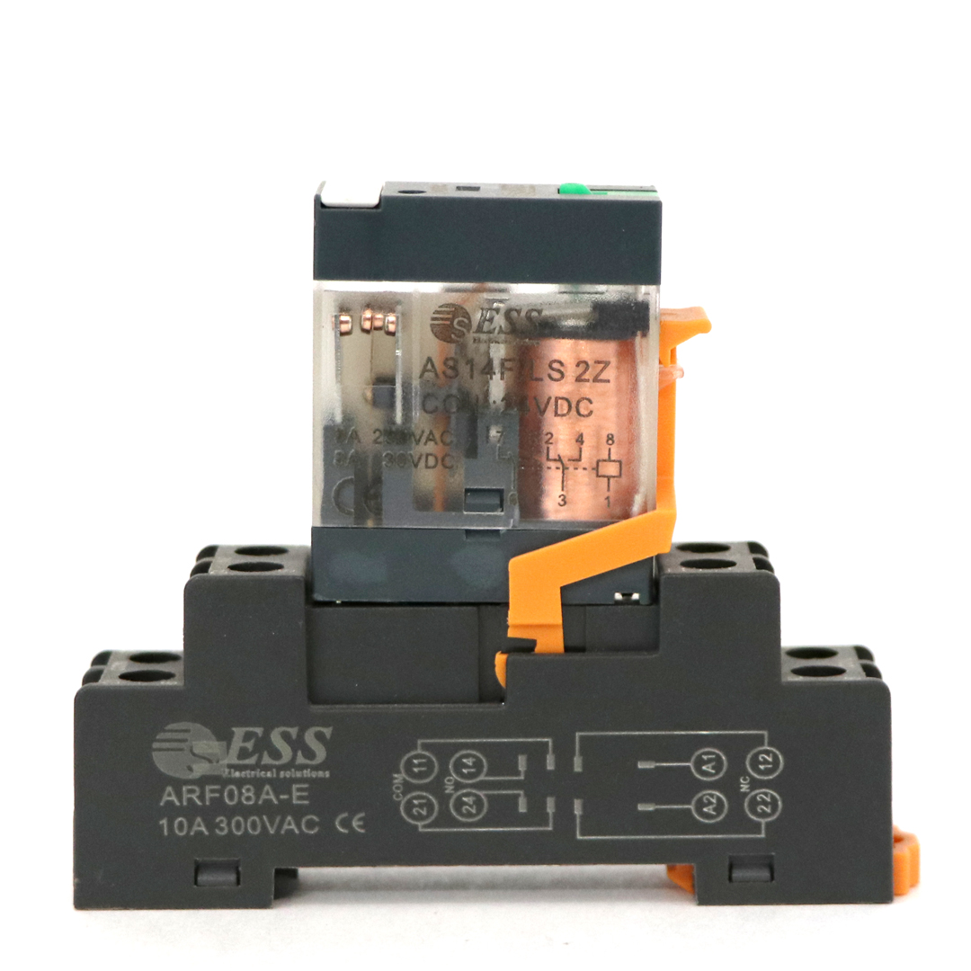 Реле промежуточное AS14F/LS 2Z 220v . Основная функция промежуточных реле - размножение контактов в цепях управления. Например, в цепи управления электродвигателем водяного насоса это реле имеет следующие функции - после нажатия кнопки «Пуск», одна пара замыкающих контактов замкнёт цепь сигнализации, показывающей оператору работу насоса, другая пара замкнёт цепь питания катушки магнитного пускателя, контактор пускателя сработает и запустит двигатель насоса. При этом пара размыкающих контактов разомкнёт цепь реверсивной работы электродвигателя, что предостережёт силовую схему от замыкания. Кроме этого, промежуточные реле могут применяться в электрических схемах для усиления управляющих сигналов. Так, например, в схеме электрической нагревательной установки вход промежуточного реле подается сигнал с прибора теплового контроля, а уже своими контактами реле коммутирует катушку магнитного пускателя, который управляет подачей напряжения на нагревательные элементы печи.