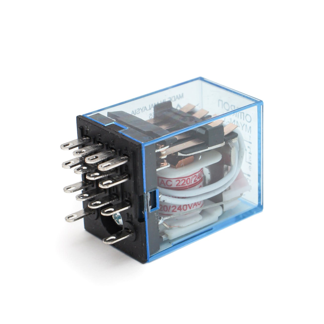 Реле промежуточные модульной серии MY4 предназначены для передачи команд управления исполнительными элементами путем коммутации их электрических цепей своими переключающими контактами. Реле соединяются с розеточными модульными разъемами MY4, устанавливаемыми на 35-мм монтажной DIN-рейке. На разъемах расположены зажимы выводов переключающих контактов и катушки. В реле применяются серебросодержащие контакты.