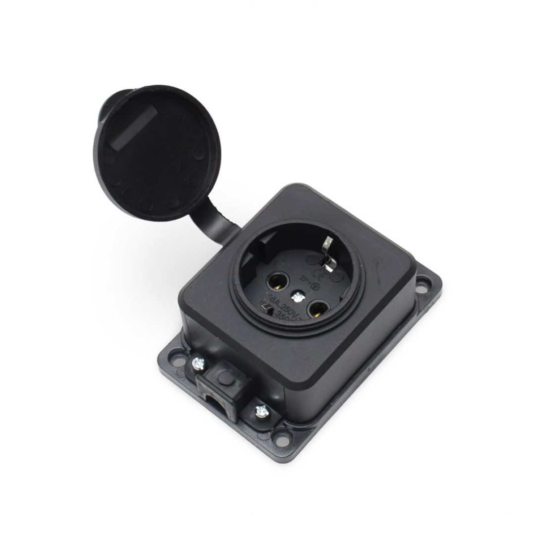 Ударопрочная розетка с защитной крышкой предназначена для подключения электроприборов в условиях повышенной влажности и запыленности. Благодаря степени защиты IP44, изделие можно использовать как в помещении, так и на улице.