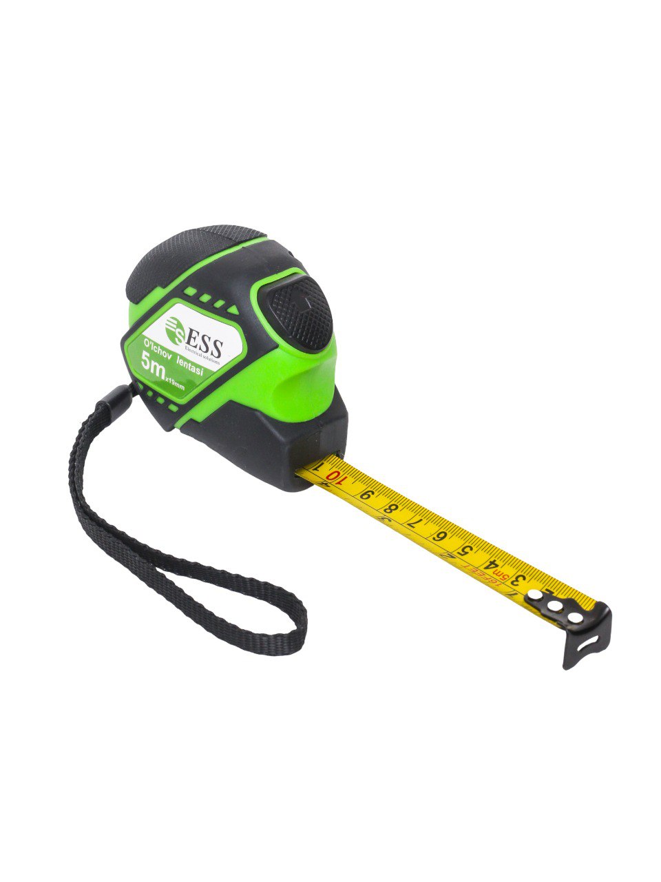 Измерительная рулетка ESS длиной 5 метров предназначена для точных линейных измерений в строительстве, ремонте и бытовых работах. Прочный корпус с прорезиненными вставками защищает инструмент от ударов и обеспечивает удобный хват. Металлическая лента с чёткой шкалой устойчива к износу и деформации.