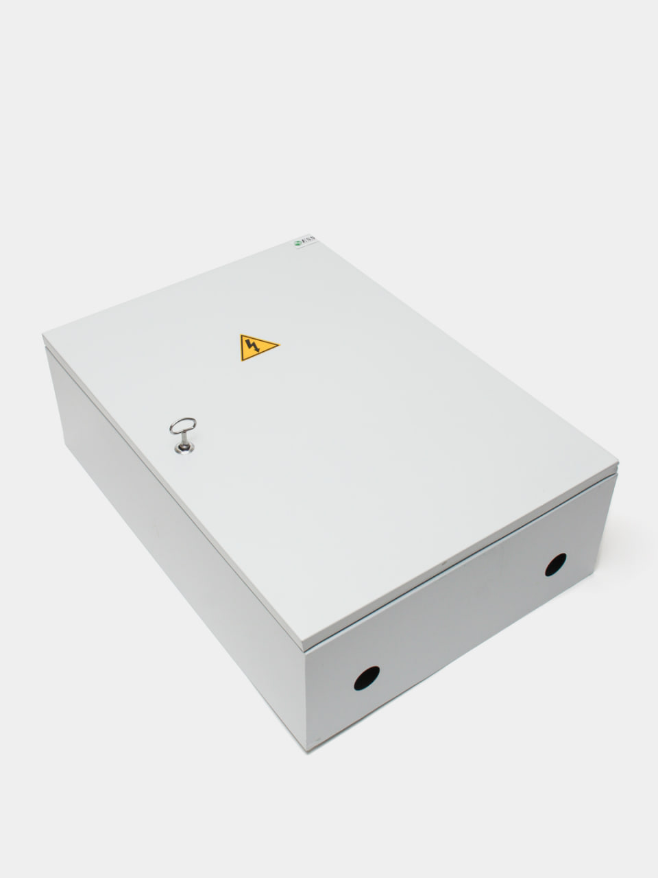 Щит с монтажной панелью представляет собой металлический каркас, имеющий отверстия на нижней панели корпуса для заведения кабеля и на задней стенке для удобного крепления к вертикальной поверхности. Комплектация включает съемную монтажную панель для более легкого крепления модулей и дверцу со встроенным, запирающимся на ключ замком, для защиты внутреннего оснащения.