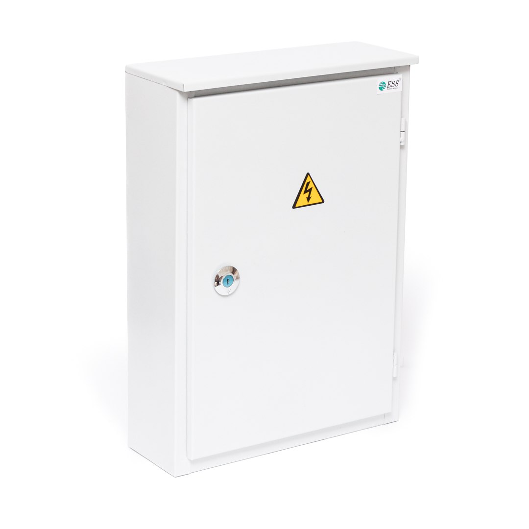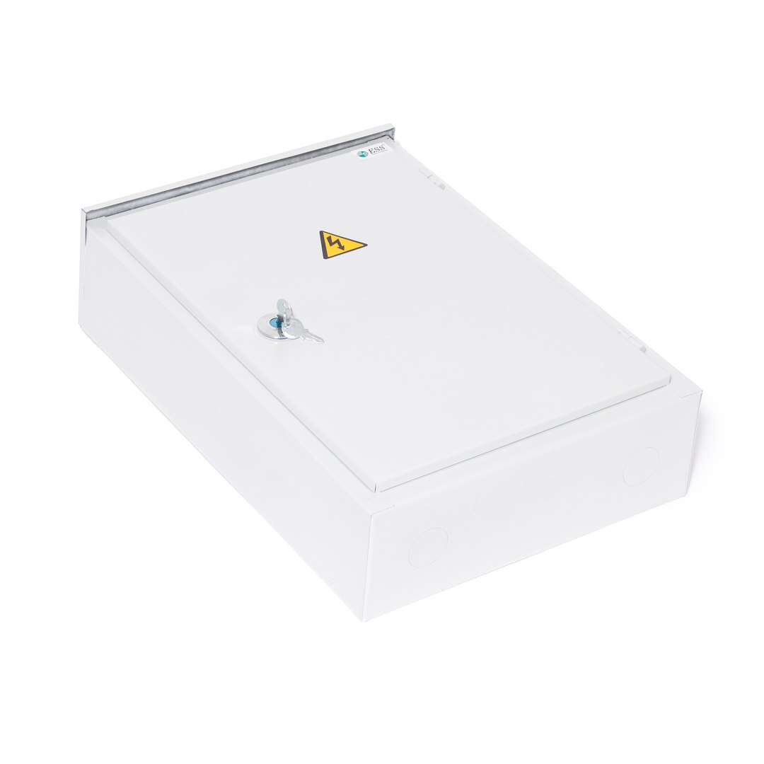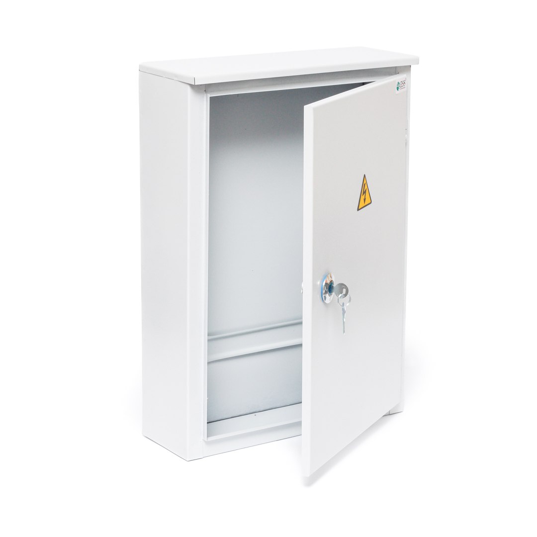 Щит с монтажной панелью представляет собой металлический каркас, имеющий отверстия на нижней панели корпуса для заведения кабеля и на задней стенке для удобного крепления к вертикальной поверхности. Комплектация включает съемную монтажную панель для более легкого крепления модулей и дверцу со встроенным, запирающимся на ключ замком, для защиты внутреннего оснащения.