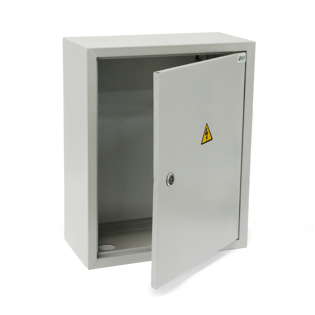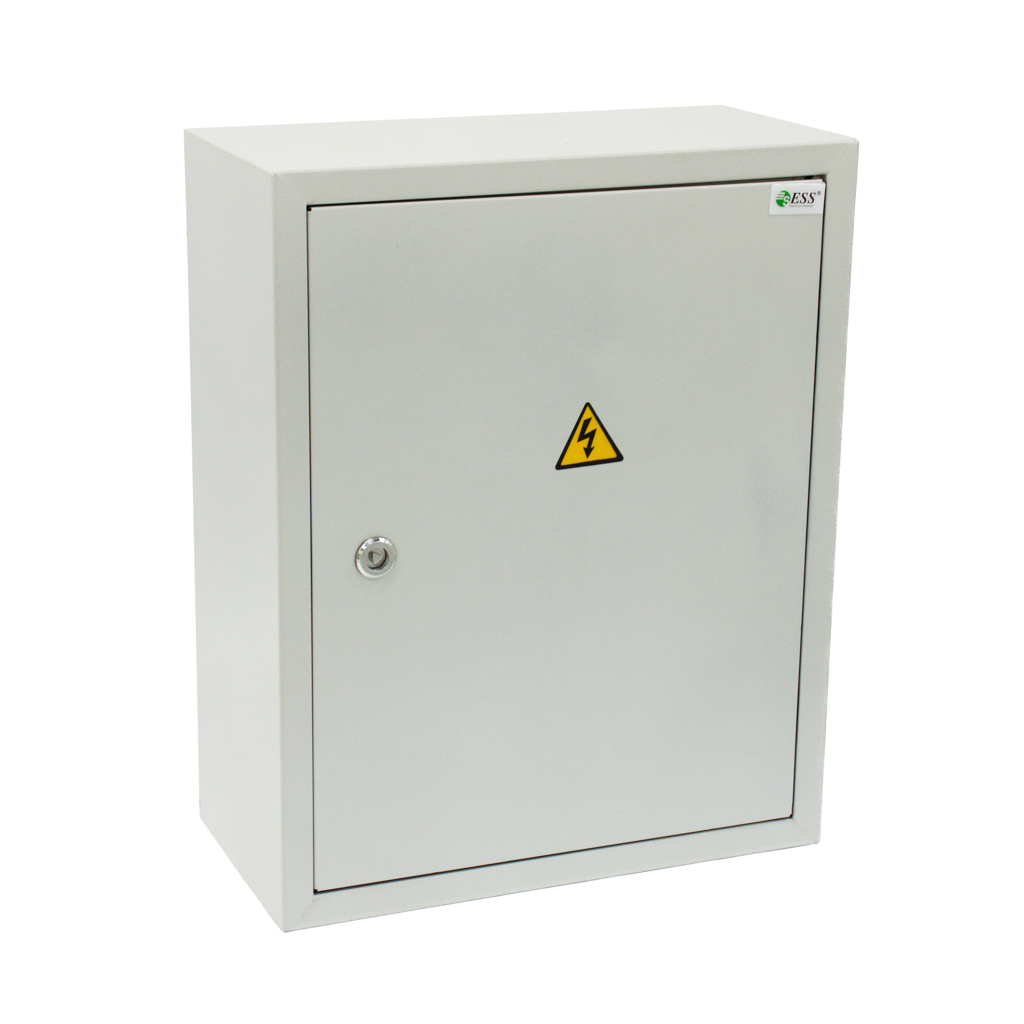 Щит с монтажной панелью представляет собой металлический каркас, имеющий отверстия на нижней панели корпуса для заведения кабеля и на задней стенке для удобного крепления к вертикальной поверхности. Комплектация включает съемную монтажную панель для более легкого крепления модулей и дверцу со встроенным, запирающимся на ключ замком, для защиты внутреннего оснащения.