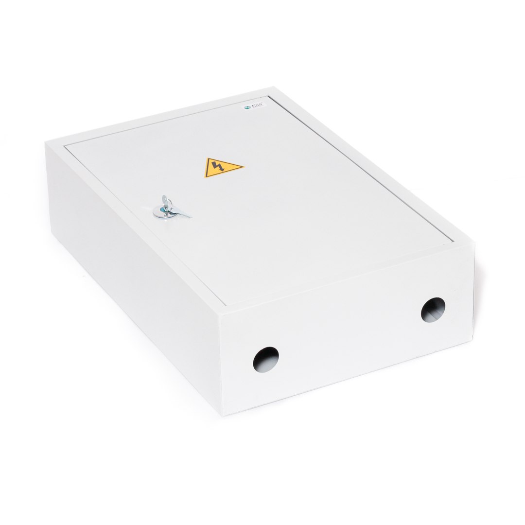 Щит с монтажной панелью представляет собой металлический каркас, имеющий отверстия на нижней панели корпуса для заведения кабеля и на задней стенке для удобного крепления к вертикальной поверхности. Комплектация включает съемную монтажную панель для более легкого крепления модулей и дверцу со встроенным, запирающимся на ключ замком, для защиты внутреннего оснащения.
