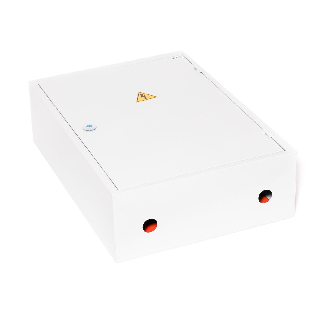 Щит с монтажной панелью представляет собой металлический каркас, имеющий отверстия на нижней панели корпуса для заведения кабеля и на задней стенке для удобного крепления к вертикальной поверхности. Комплектация включает съемную монтажную панель для более легкого крепления модулей и дверцу со встроенным, запирающимся на ключ замком, для защиты внутреннего оснащения.