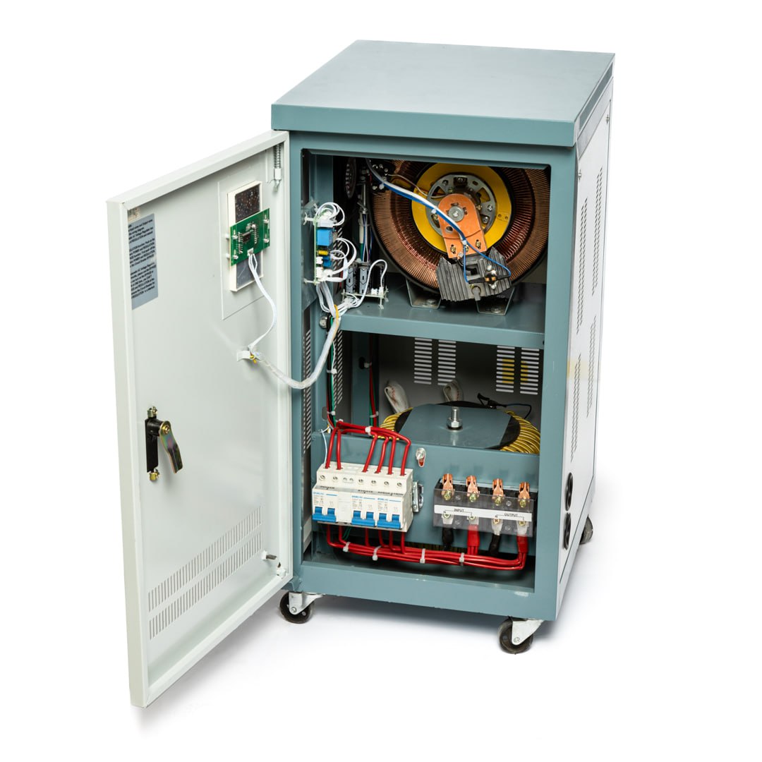 Стабилизатор SVC 15 000 VA использует латерный тип регулирования, обеспечивая высокую точность и быстрый отклик на изменения входного напряжения. Он оснащен системой автоматического управления и защиты, предотвращающей перегрузки, короткие замыкания и другие аварийные ситуации. Это устройство обеспечивает надежную и стабильную работу подключенного оборудования, продлевая срок его службы.