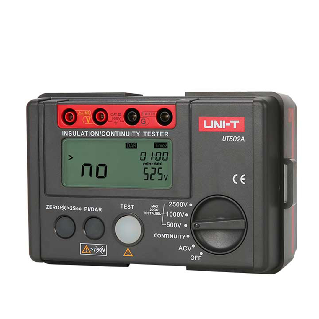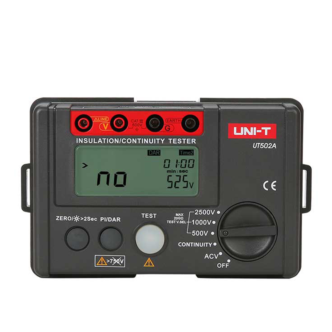 Измерители изоляции серии UT500 используются для измерения сопротивления изоляции электрического оборудования и бытовых приборов. Это делается путем измерения сопротивления изоляции между электрическими цепями или между цепями и землей. Серия UT500 может измерять сопротивление изоляции, напряжение переменного тока, низкое сопротивление, PI (индекс поляризации) и DAR (диэлектрическую абсорбцию). Это диэлектрические инструменты для обеспечения безопасности трансформаторов, генераторов, высоковольтных двигателей, силовых конденсаторов, силовых кабелей, разрядников и другого электрического оборудования, которое может работать безопасно и точно.
