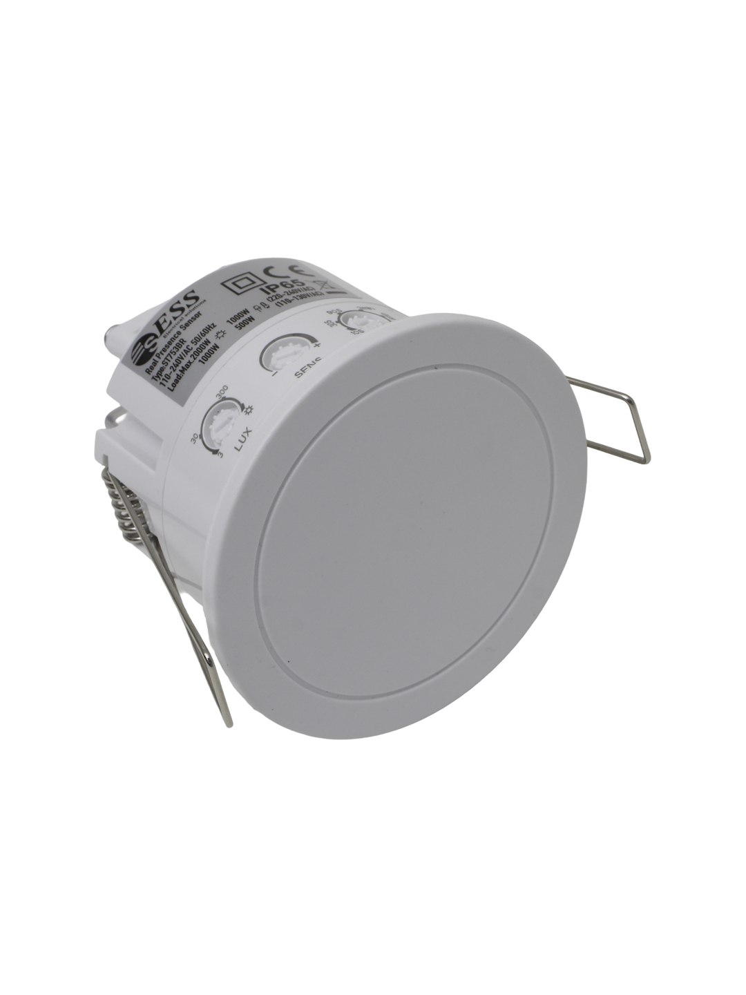 Датчик монтируется в потолок и имеет степень защиты IP65, что делает его устойчивым к пыли и влаге. Подходит для использования как в жилых помещениях, так и в офисах, коридорах, торговых залах, а также в помещениях с повышенной влажностью (например, санузлах или подсобных зонах).