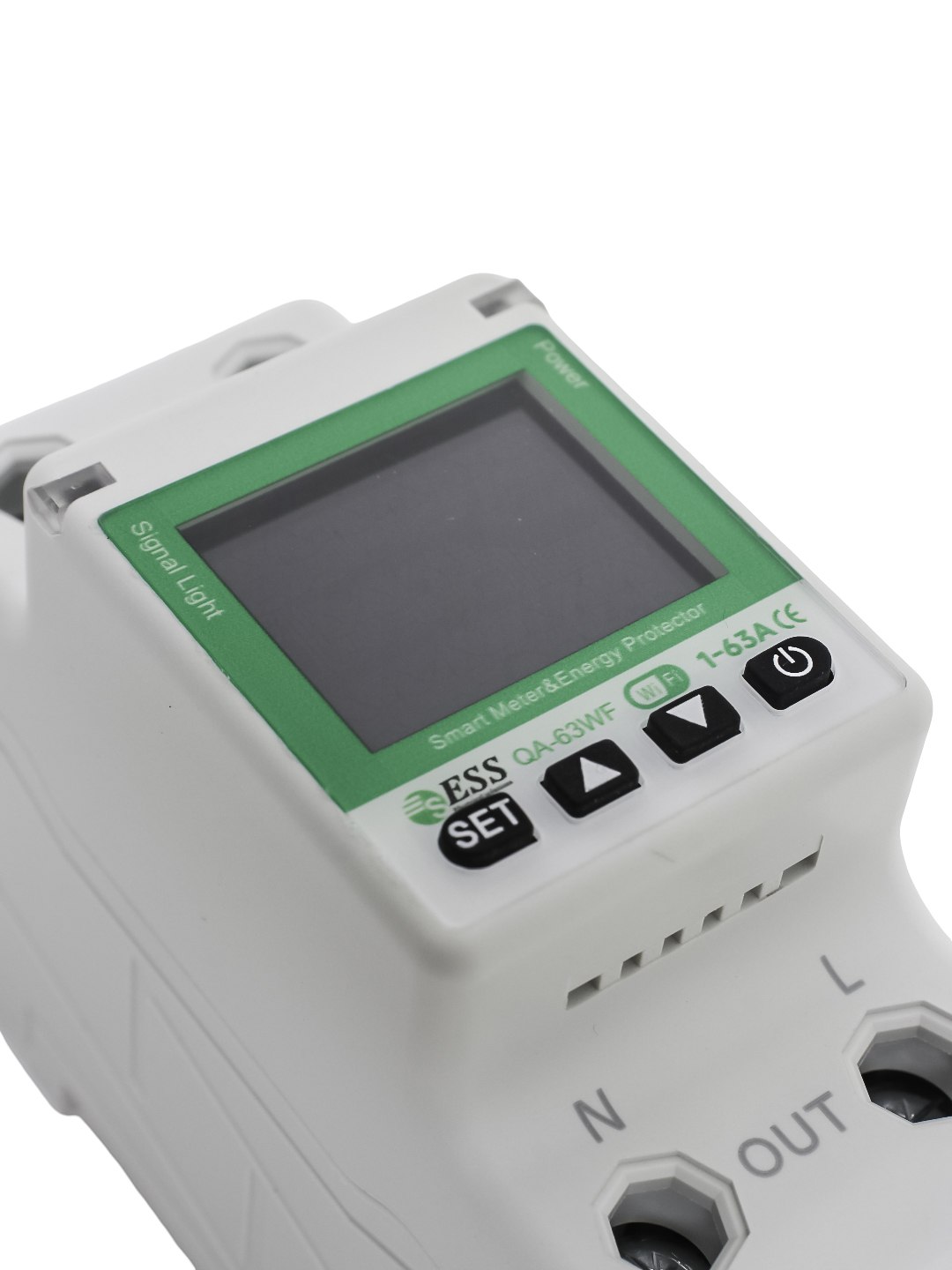 Благодаря цифровому дисплею, прибор отображает текущее напряжение, ток, мощность и потребление электроэнергии. ESS QA-63WF совмещает в себе функции счётчика, автомата защиты и интеллектуального контроллера, что делает его идеальным решением для современных «умных домов» и энергоэффективных систем.
